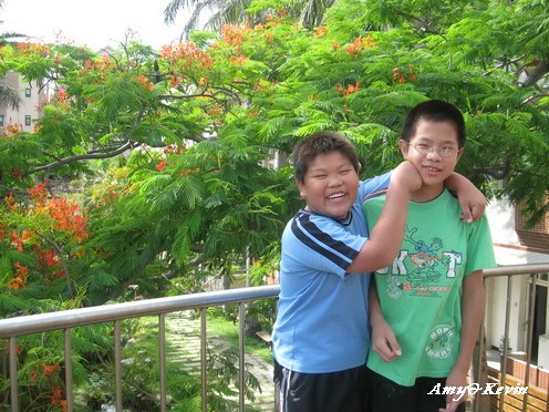 我帶著孩子來到了每年畢業前夕一定要拍的鳳凰花前
